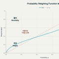 주류 경제학은 인간을 합리적 존재로 가정합니다. 그러나 실제 인간은 객관적 확률보다 「희망, 공포, 확실성, 절박함」 같은 감정에 이끌려 확률을 비이성적으로 왜곡합니다. 즉 희망에 복권을 사고, 공포에 비행기를 피하며, 확실성을 찾아 보험을 중복 가입하고, 절박함에 주식을 물타기합니다. 합리적 계산보다 감정이 확률을 왜곡하는 것입니다. 정치적 프레임이 성공하는 이유도 그것이 논리적으로 옳기 때문이 아니라, 인간의 비합리적 심리를 정교하게 파고들기 때문이다. ◆ 확률왜곡 곡선 낮은 확률을 과대평가하고, 높은 확률을 과소평가하는 경향은 확률가중함수에 근거한 확률왜곡곡선(inverse-S curve) 으로 설명됩니다. 이 곡선은 실제 확률이 마음속에서 어떻게 뒤틀리는지를 보여줍니다. ① 역 S자 모양 위 그래프의 역 S자 형태는 ‘위로 볼록 → 아래로 볼록’의 전환을 보여줍니다. 가로축(x축)은 실제 확률을 나타냅니다. 세로축(y축)은 심리적 가중 확률값을 의미합니다. 45도 점선은 실제 확률과 심리적 확률이 일치하는 이상적 상황을 나타냅니다. 반면, 역 S자 모양의 실선은 왜곡된 심리적 확률을 보여줍니다. 작은 확률 구간(왼쪽)은 위로 볼록, 큰 확률 구간(오른