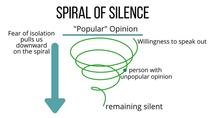 결국 침묵의 나선은 단순한 개인 선택의 결과가 아니라, 공론장에서 ‘보이는 것’을 인식된 의견으로 착각하는 인식의 편견의 결과입니다.